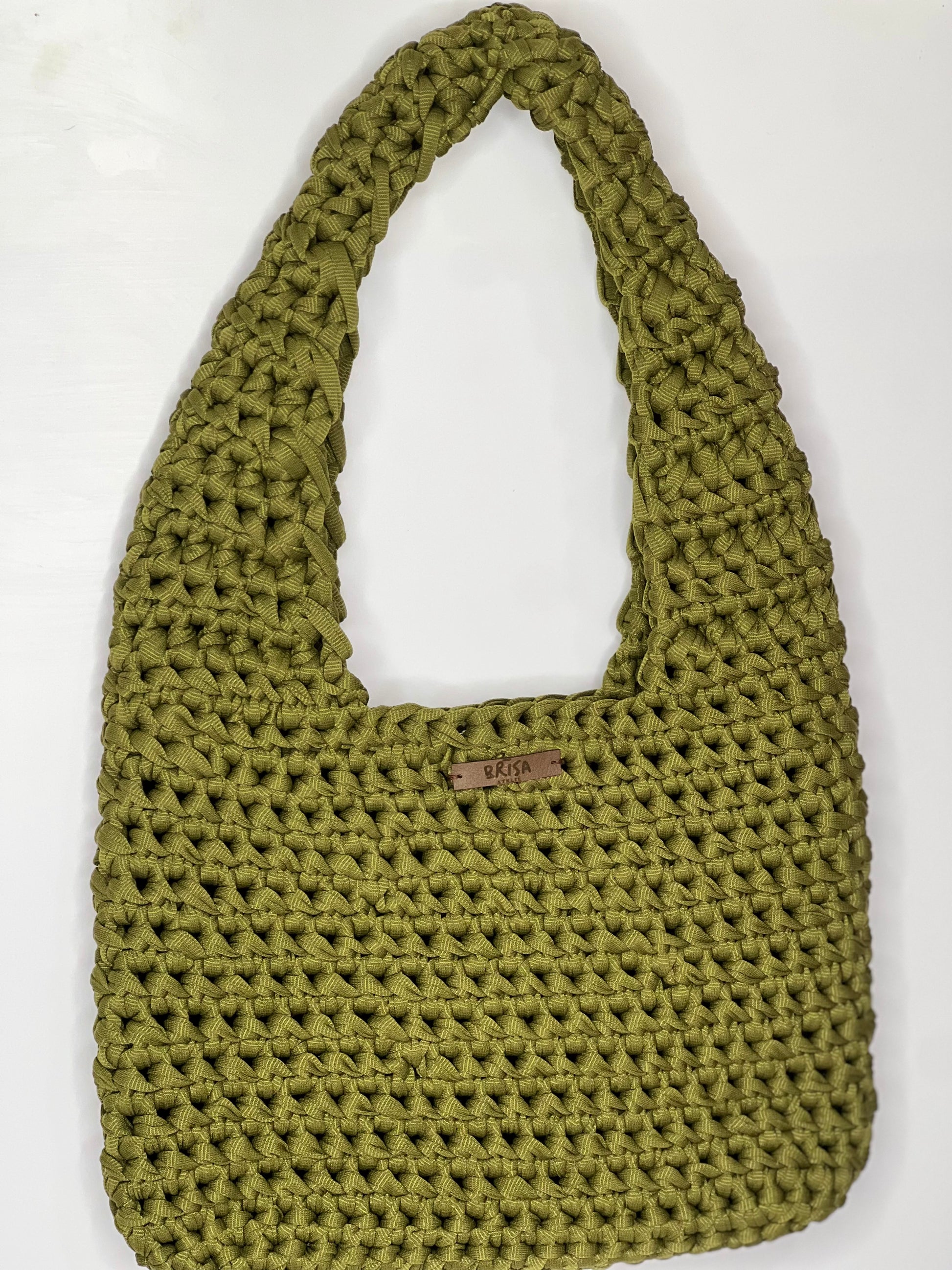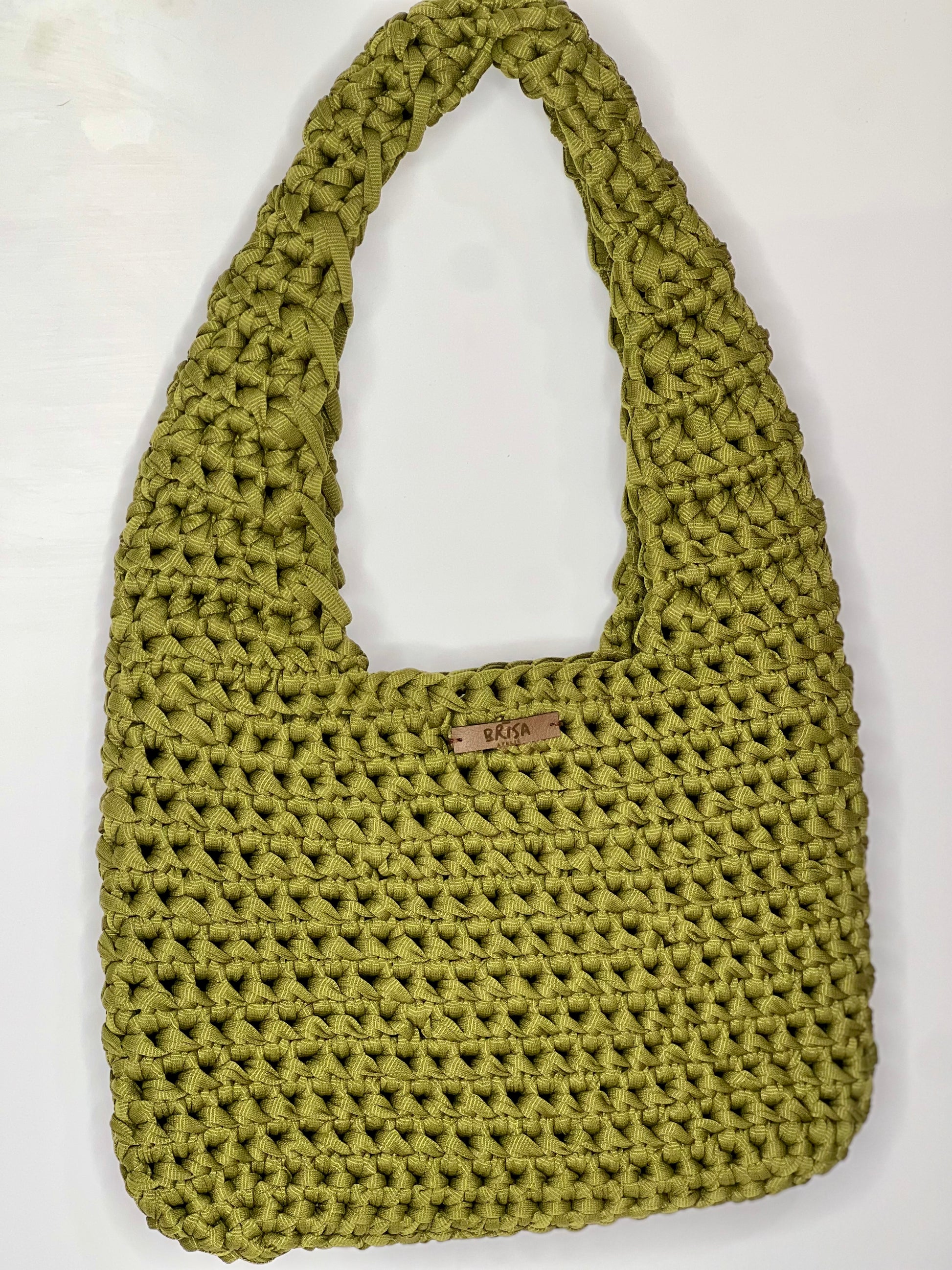 Feita à mão com fio de malha, ela tem uma textura macia, visual moderno e acabamento impecável — ideal pra quem ama praticidade com charme.